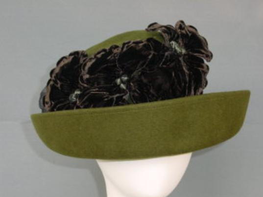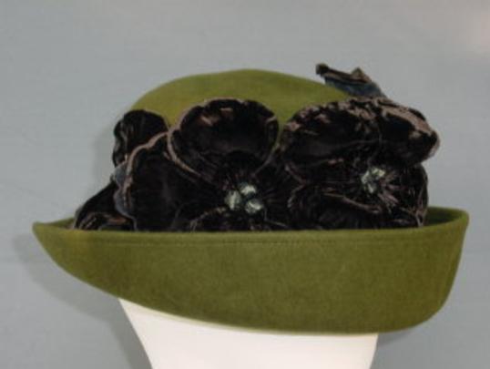 Felt Medium Brimmed Hat with Velvet Flowers...Shown in Olive Green. Standard Sized 22.5"