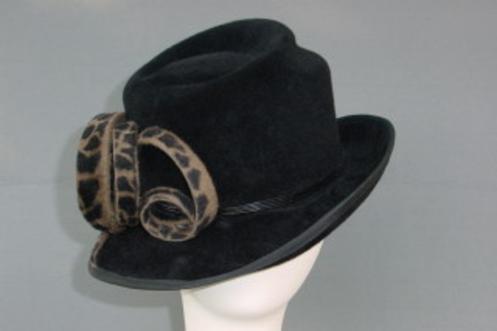 Felt Small Brim with Felt & Leather Trim...Shown in Black & Animal Print. Standard Sized 22.5"