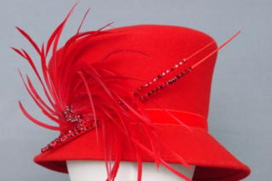 Small Brimmed Felt with Quills, Rhinestones & Feathers...Shown in Red. Standard Sized 22.5"