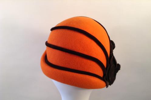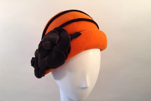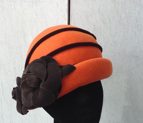 Turban Pillbox with Velvet Trim & Flowers...Burnt Orange & Brown. Standard Sized 22.5"