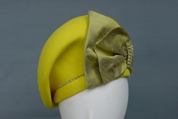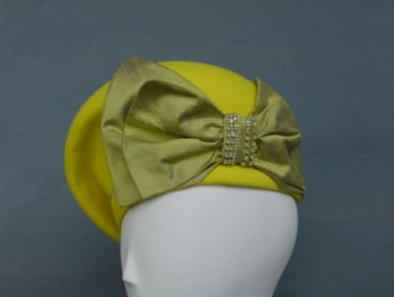 Contoured Pillbox with Silk Bow & Rhinestones...Shown in Yellow & Lime. Standard Sized 22.5"