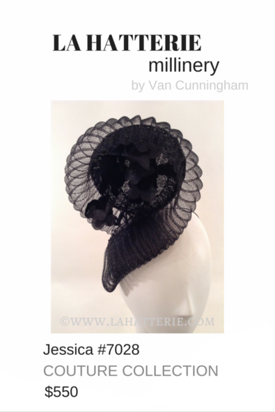 Black Horsehair & Sinamay Headpiece with Floral Trim.