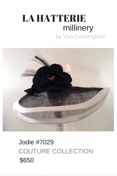 Black & Pink Large Brim Sinamay Hat with Floral & Feather Trim.