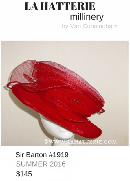 Red Woven Braid Open Crown Cloche with Sinamay Trim with hat pin and beaded accents