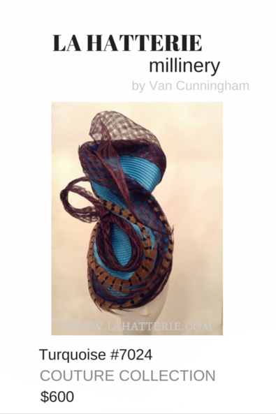 Turquoise Braid & Sinamay Headpiece with Feather Trim.